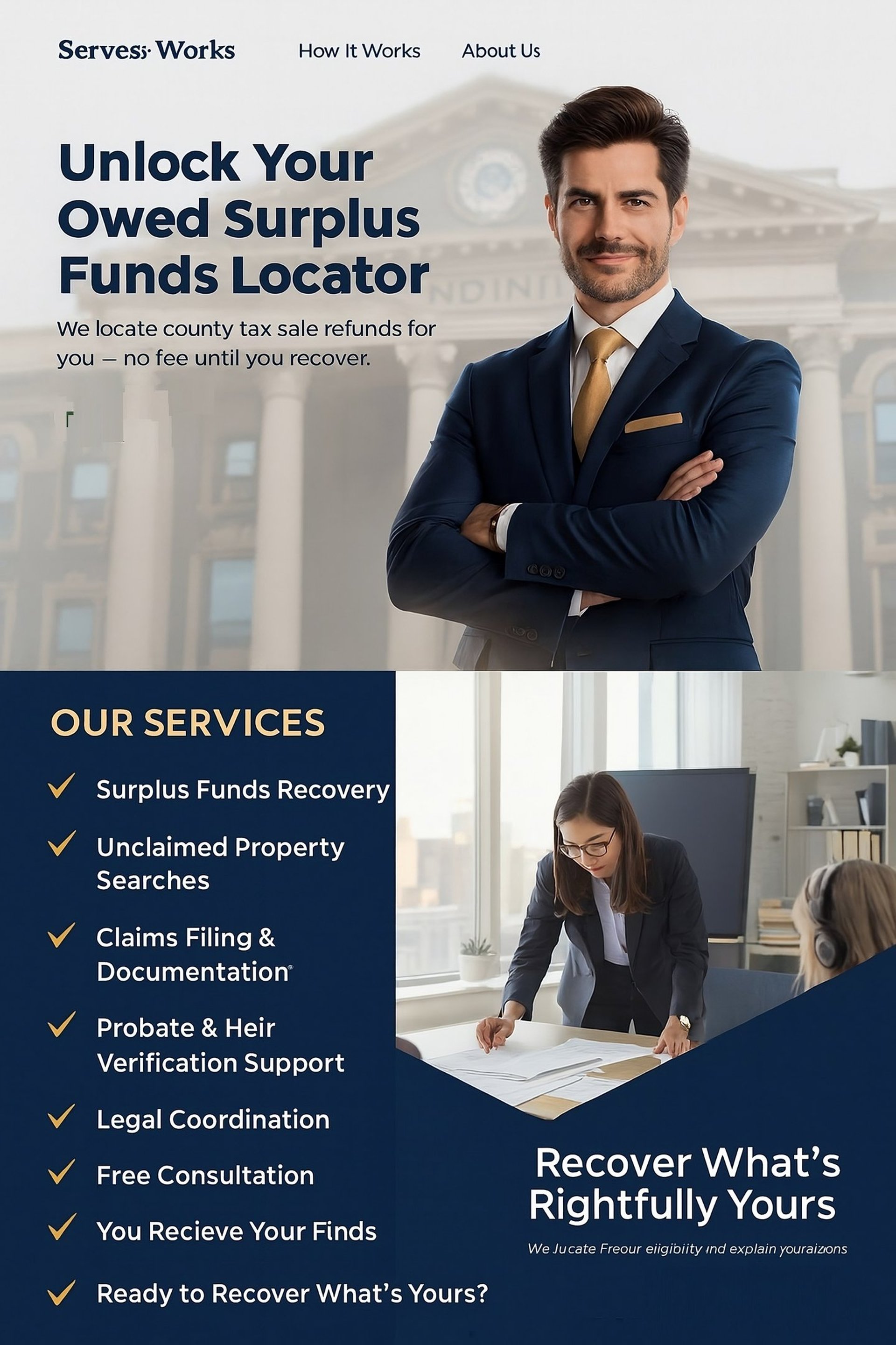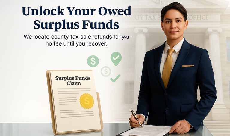 We locate and recover surplus funds from property tax sales with no upfront fees.